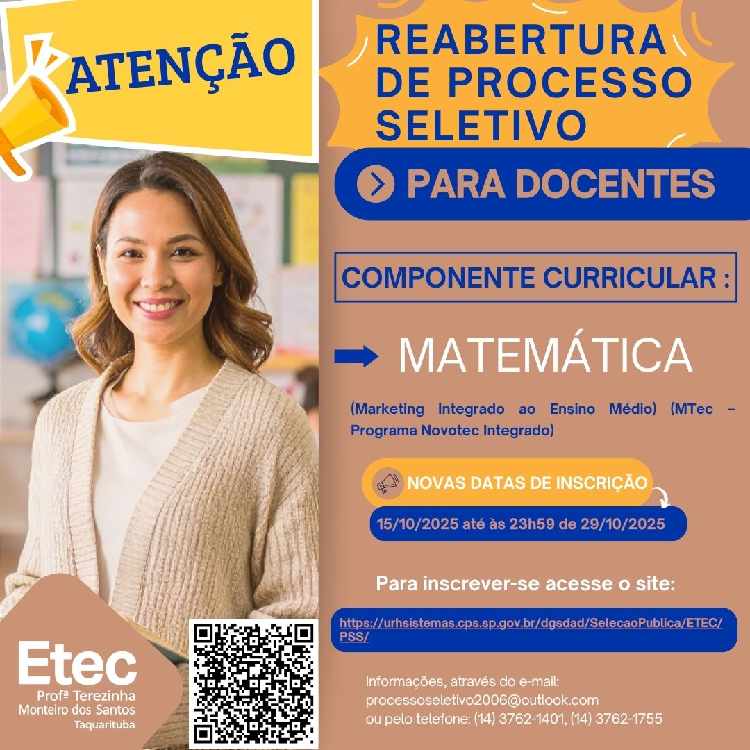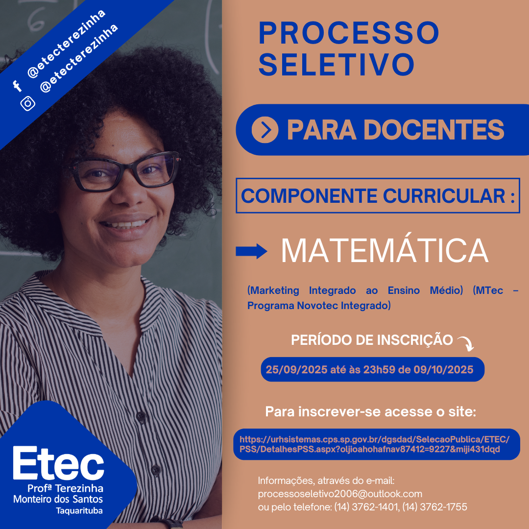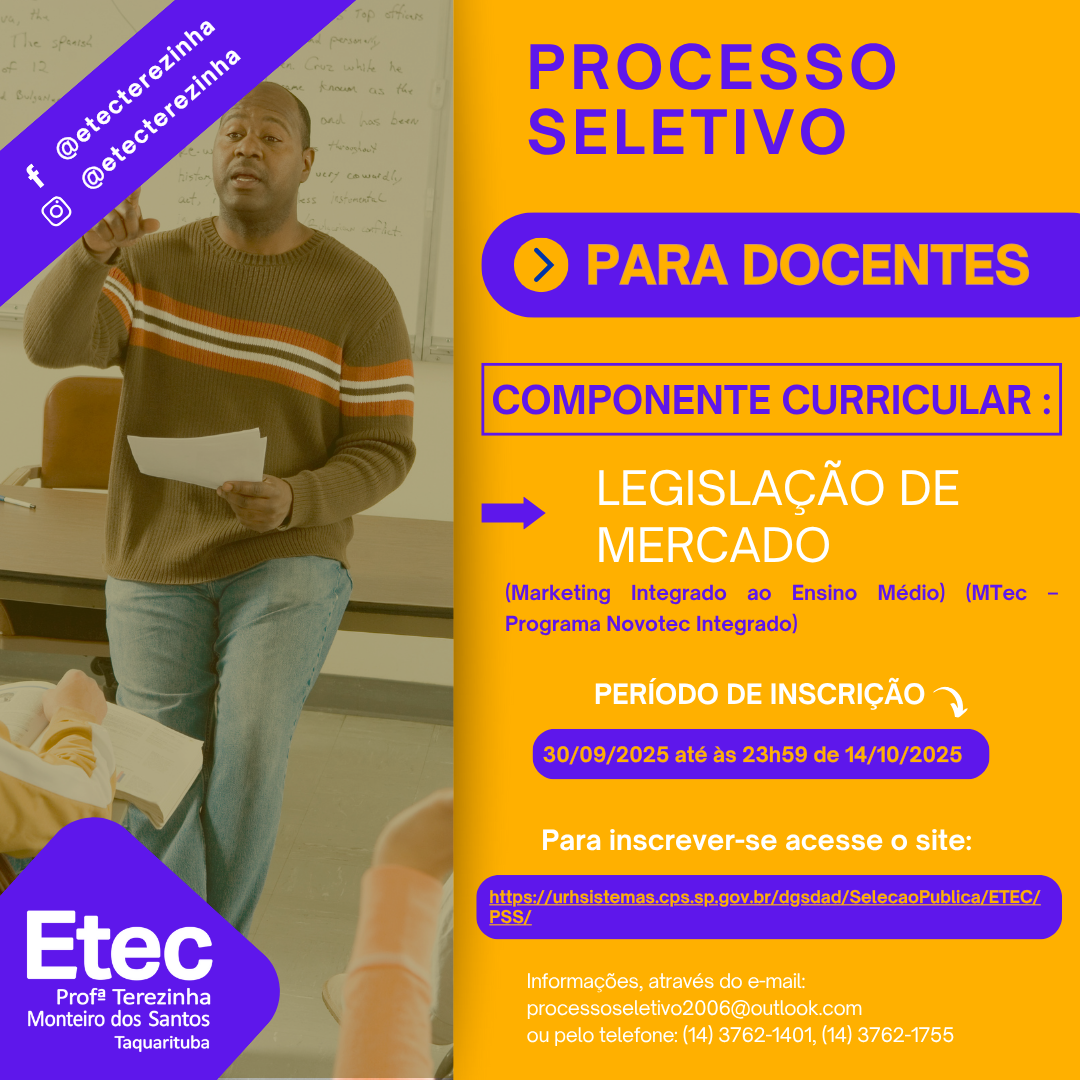 EDITAL DE ABERTURA Nº 140/03/2024 COMPONENTE CURRICULAR: Marketing (para a Habilitação Vendas) (Vendas Integrado ao Ensino Médio (MTec – Programa Novotec Integrado) – Parceria SEE) ACESSE O EDITAL CLICANDO AQUI