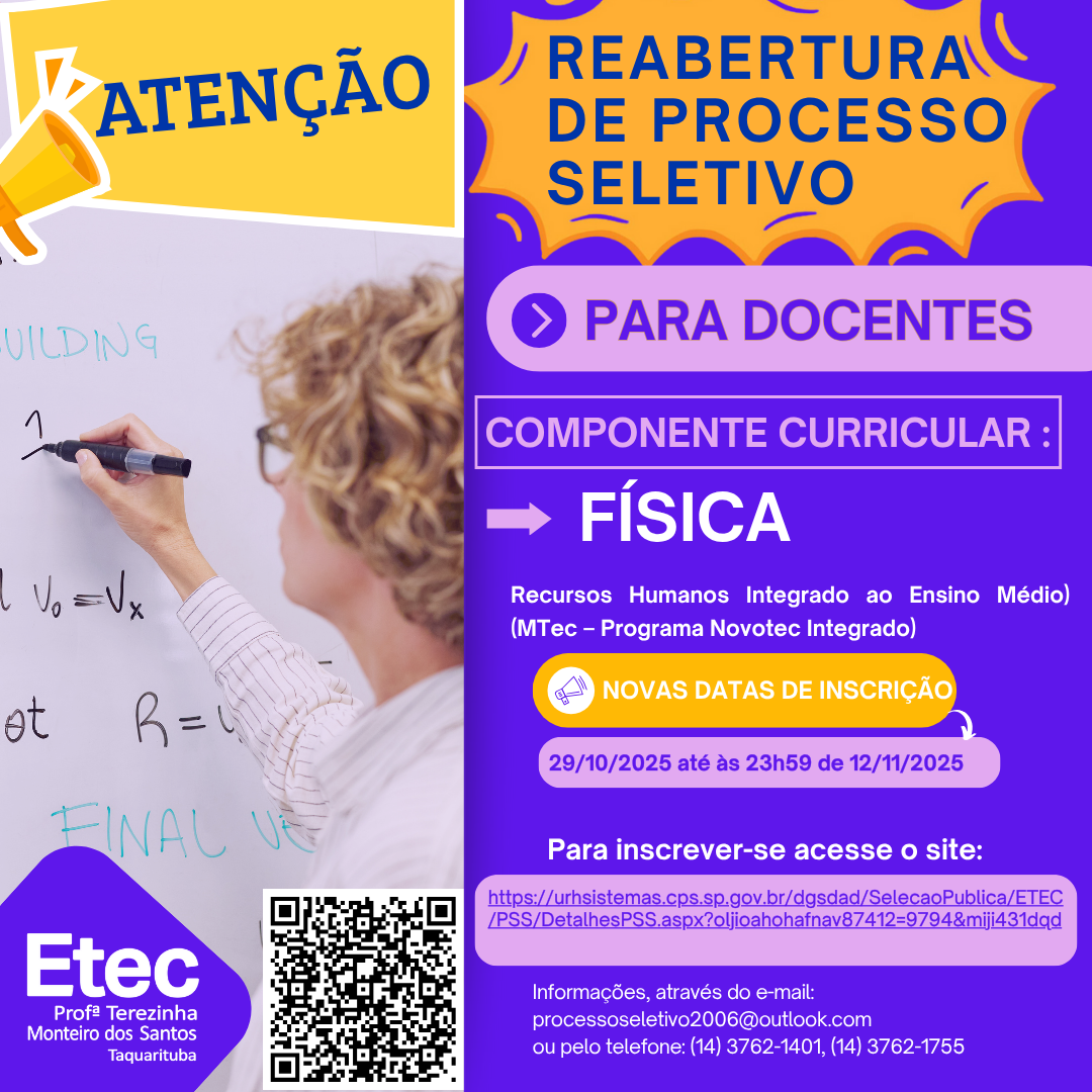 EDITAL DE ABERTURA Nº 140/30/2024 COMPONENTE CURRICULAR: Física (BNCC/ ETIM / MTec / EM com Ênfases)(Administração Integrado ao Ensino Médio (MTec – Programa Novotec Integrado) – MTec–PI)